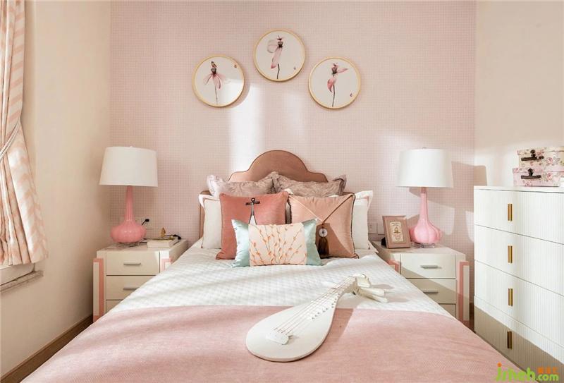 中式元素為房間增添一些詩情畫意,粉嫩的色彩配合床頭背景掛畫,空氣中流動著粉色的旋律,溫暖的氛圍伴你入睡,也將在清晨用最溫柔的方式將你喚醒。樣板房設(shè)計