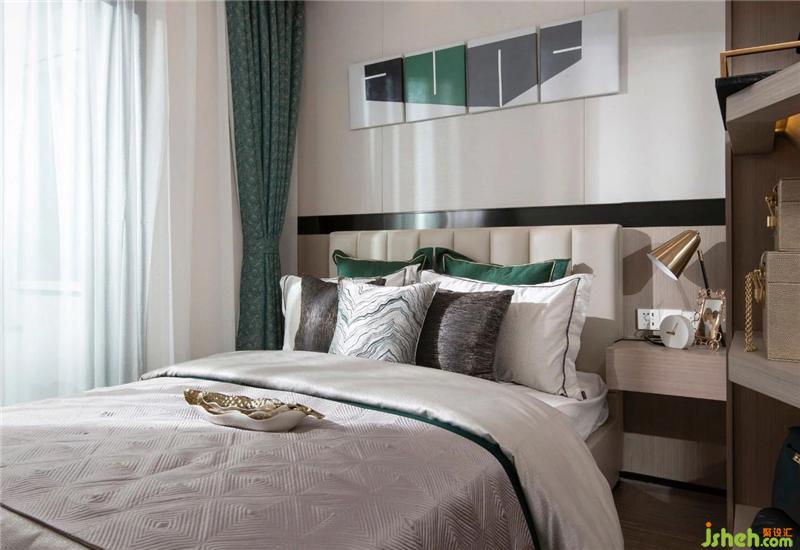作為休憩的私密空間,舒適性是首要被考慮的問題。手工皮革床的啞光質感,樸質卻不失貴重。精致的吊燈也體現(xiàn)出細節(jié)上的講究。嵌入式衣柜,配置精致的衣服及飾品更增添生活氣息。樣板房設計