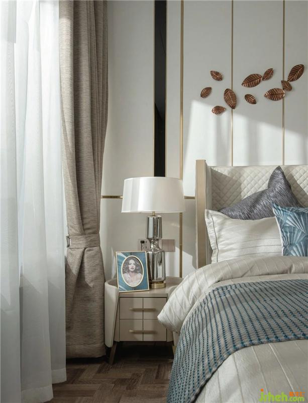 淡雅的色彩搭配干練的線條,以及幾末精致的藍(lán)色與金屬色的巧妙混搭,讓空間在輕奢的外表之下更是大大豐富了空間層次,不動(dòng)聲色地流露出靈魂中的優(yōu)雅。樣板房設(shè)計(jì)