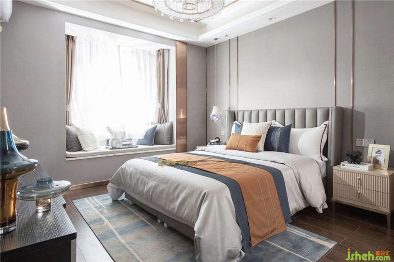 空間承載著生活,每個(gè)人都是生活家。緊張快節(jié)奏的都市生活下,為了讓業(yè)主在回家之后能卸下身上的疲憊,隨心所欲的做自己,主臥整體空間采用了柔和的色調(diào),精致的床品,不同肌理的碰撞,來體現(xiàn)層次感,也豐富了空間展現(xiàn)的視覺效果。電視柜的掛畫成了整個(gè)空間的點(diǎn)睛之筆,仿佛把維港的靜謐與璀璨帶入眼前。樣板房設(shè)計(jì)