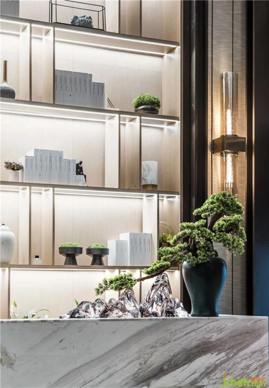 藝術(shù)裝置吊燈橫跨整個洽談區(qū)上空,賦予了靜止的空間鮮活的生命動力,以流線的動感,強化設(shè)計主題。自然生態(tài)與科技感,藝術(shù)性與文化氣氛相交織,不失現(xiàn)代與時尚感。售樓處設(shè)計