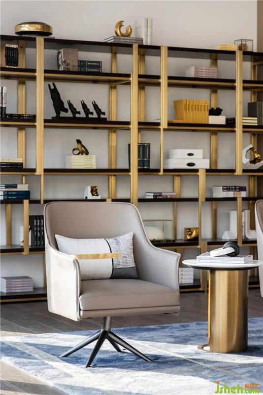 VIP room is a private space for in-depth conversation among key customers, prospective customers and contracted customers. According to different functional requirements, different furniture combinations are provided to meet the needs of a group of MINOTTI leather sofas, single chairs and square stools that the extended family came to discuss. The tea tables with metal and stone materials collide with each other to enhance the elegance and luxury of the space with blue and gold ornaments.