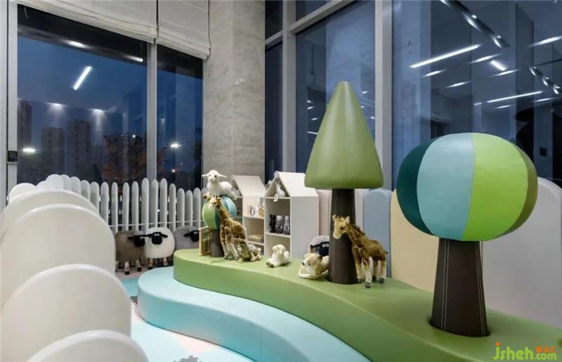 The children's recreation area will create a comfortable and safe recreation space. We will fully consider the safety issues in the selection of furniture, remove edges and corners, and choose soft bag furniture. Children are born artists, and colorful colors can inspire children's endless imagination. In addition, the hard-fitting wooden fence is combined with animal elements to increase interest.