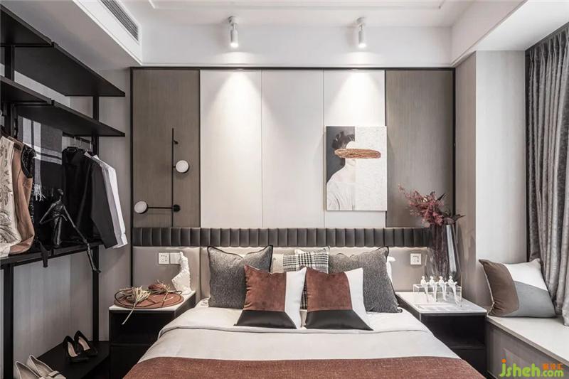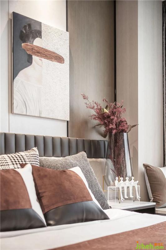 臥室延續(xù)了整體空間的大地棕色,在主臥空間中顯得含蓄,靜謐。窗外景色正好,樹梢頭上,鳥兒淺唱,安謐意境莫不靜好,給予家的溫暖舒適。