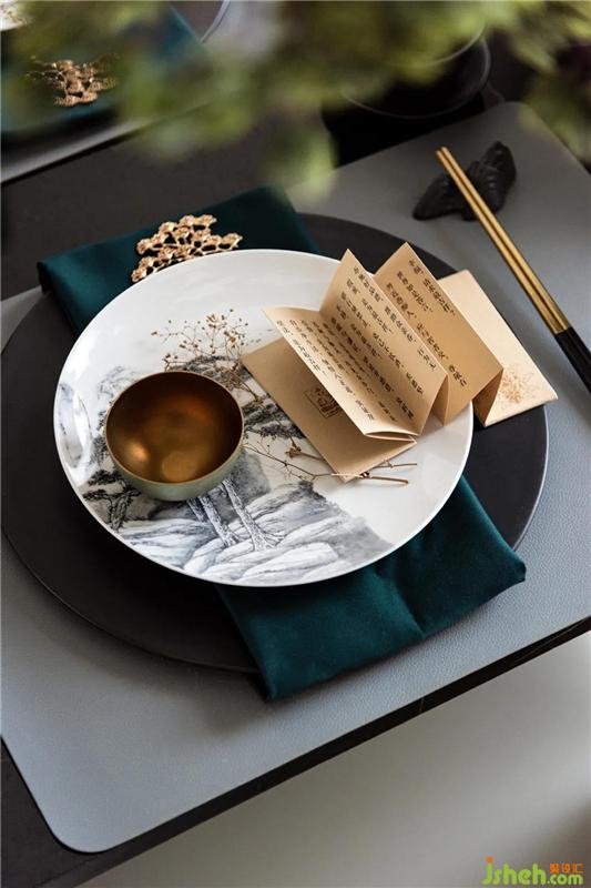 餐廳將東方質(zhì)樸的經(jīng)典古韻味還原,山與松、綠與白、金屬與質(zhì)感,整個畫面疏密有致,保留了通透大氣的空間感,將“用餐”深化到一個新的高度。新中式之所以大受歡迎,大概就是因為它在傳承經(jīng)典的基礎(chǔ)上,又用現(xiàn)代手法進(jìn)行了融合與創(chuàng)新。
