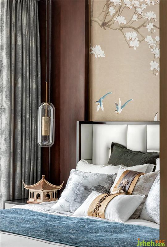 新中式無需采用昂貴的中式家具,而更多在于突出其意境。木材的天然質(zhì)感與花鳥布藝皆能帶來東方魅力,置身于此,感受自然舒適優(yōu)雅的空間意境。