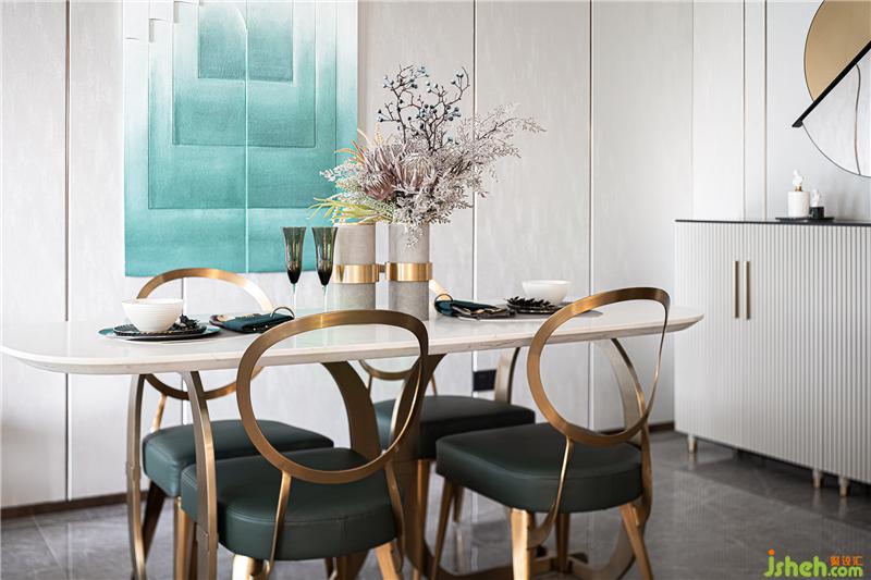 餐廳四椅的配置滿足一家人的用餐需求,桌面采用大理石的材質(zhì)來增加用餐的舒適度與體驗(yàn)感,配上金屬質(zhì)感的材質(zhì),整體線條流暢細(xì)膩,纖薄的椅背,使用餐氛圍更加精致,圍坐在餐桌前,餐具輕奢至簡,只留美食滋味回蕩于唇齒之間。