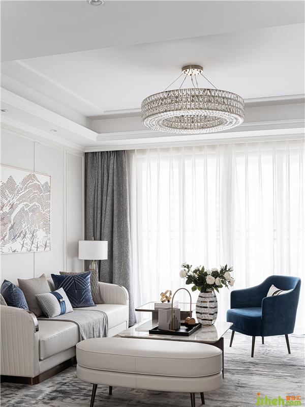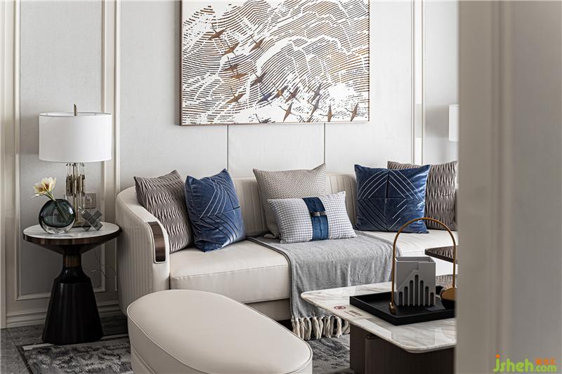 客廳將人文藝術與空間相融,以現(xiàn)代簡約的藝術形式,彰顯出優(yōu)雅的現(xiàn)代摩登奢華氛圍,構建超越時空的經(jīng)典美學空間。家具及飾品以絲光布藝、大理石、皮革、金屬配搭淺色木飾面,營造內(nèi)斂奢華的品質感,詮釋出都市精英人群的品味與風范。