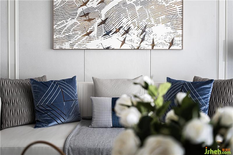 家承載著主人對于生活期許,我們選用淺色紋理背景墻、雅致的灰藍與淺色的基調(diào)挑起了空間的韻律美感,于光和影的對話里,散發(fā)空間的魅力。