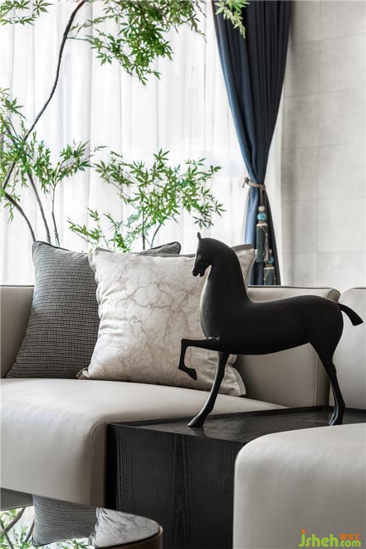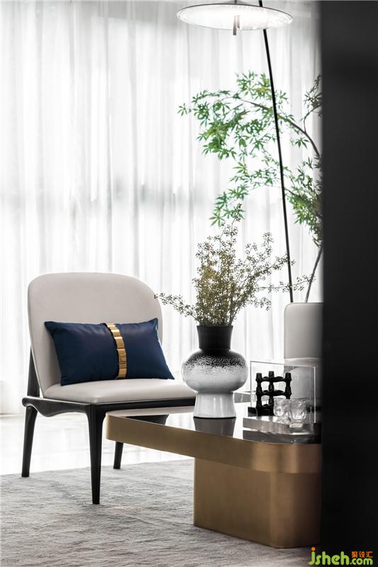 靛藍(lán)低飽和度的色調(diào),淡雅而不失活力大氣,有著極舒適的色彩視感,是營造舒緩氛圍居室空間的絕佳色彩。寧靜的格局觀感總是能輕易撫慰人們內(nèi)心的焦躁,營造一方清爽靈動的自由天地。新中式的家具和高品質(zhì)的材質(zhì),營造一個藝術(shù)、舒適、精致的生活空間。