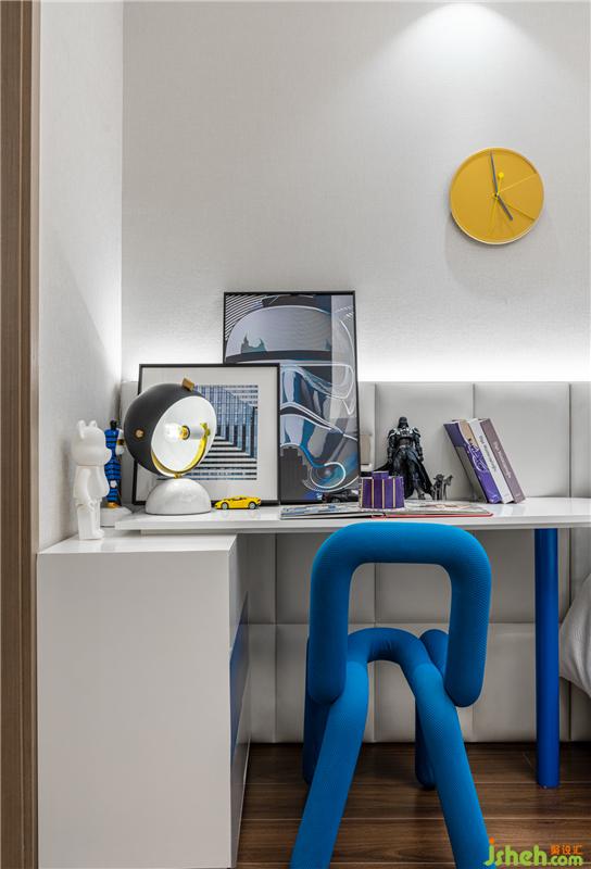 “我是一個(gè)任性的孩子,畫了一個(gè)不會(huì)哭泣的星球”,孩子的世界是沒有邏輯的,只有天真和單純。兒童房以星球大戰(zhàn)為主題,選用星球大戰(zhàn)實(shí)物玩具,營造一個(gè)想象力馳騁、輕松活潑的兒童空間。