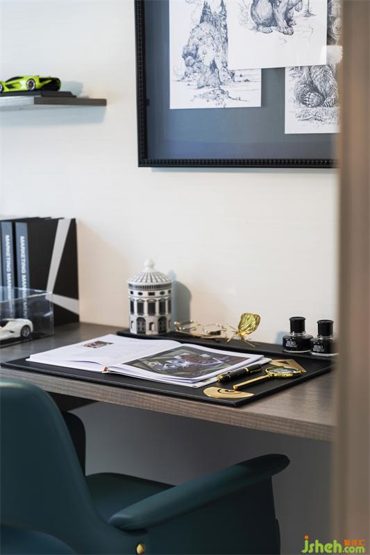 書房是展現(xiàn)戶主深層底蘊的場所,同時也是運籌帷幄的思考空間。樣板房設(shè)計上我們追求空間的主體性與實用性,墻面的掛畫粘貼的是男主人隨筆的工筆畫,只為記錄轉(zhuǎn)瞬即逝的靈感,簡潔干練造型的書桌,能讓男主人在此盡情創(chuàng)作。