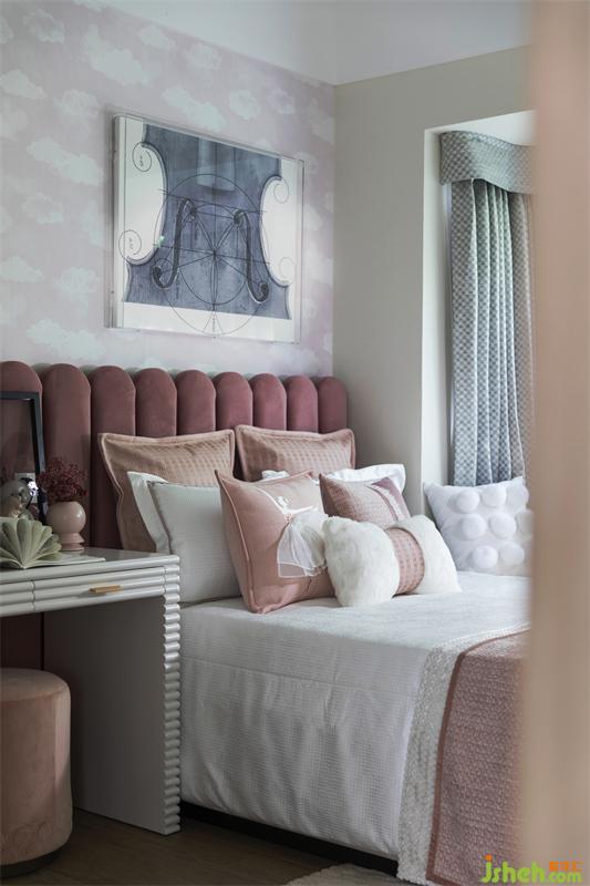 幻想的世界里,用一抹粉色來呈現(xiàn)柔和的夢幻童趣。保持這個美好的初衷,構成孩童富饒的精神世界。房間里擺放女孩最喜歡的小提琴與琴譜,用一個符號,暈染數(shù)段柔影,交織一片細膩純粹的精神樂章。