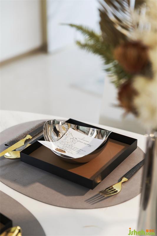 餐廳空間展現(xiàn)樸實不華之美,裝飾掛畫利落大方,裝飾花藝與餐具將家的溫馨感點亮,讓美好的用餐時光更添一份溫度感。