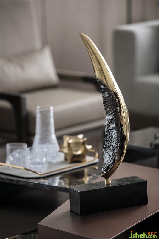 超大L型落地窗大客廳讓整個(gè)空間豪氣十足,盡情享受城市的天際線,24小時(shí)觀賞城市的發(fā)展與變遷。意大利MINATTI轉(zhuǎn)角組合沙發(fā)可以自由切換成會客聚會模式和家人閑坐燈火可親的合家歡模式。象征著與時(shí)間賽跑的“時(shí)光的腳印”掛飾,笑容可掬的獵豹模型,拍賣會收集的金屬象牙藝術(shù)品,剛剛?cè)计鸬墓虐脱┣?,冉冉升起火苗的嵌入式電子壁爐,整排存放藝術(shù)收藏品的展示柜,無不展示著主人的審美情趣和對藝術(shù)品投資的熱忱,腹有詩書氣自華的書卷氣與藝術(shù)合二為一。
