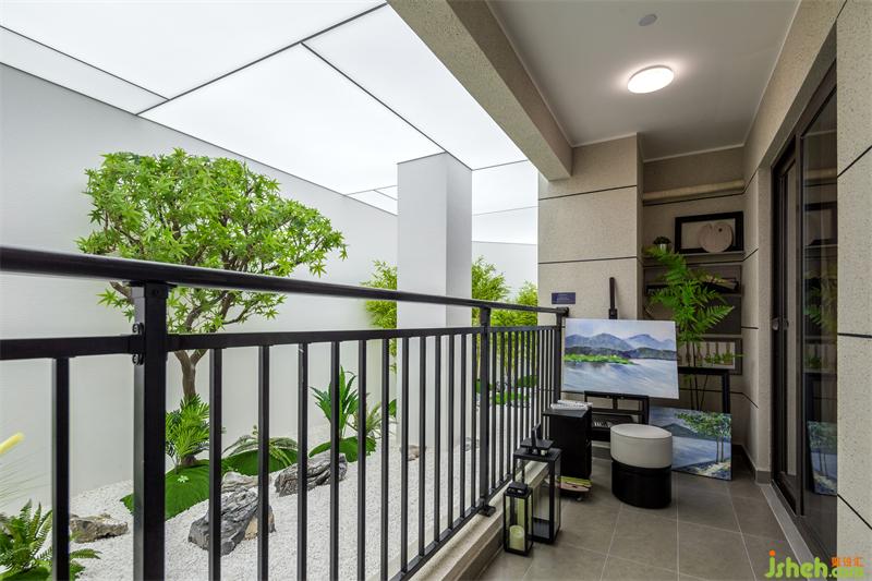 客廳陽臺(tái),半通透的設(shè)計(jì)讓自然的氣韻自由穿梭。陽臺(tái)一角是女主人的畫室,整個(gè)空間禪而不寂,展現(xiàn)出一種樸素的渾然天成之美。致虛極,守靜篤。主人在家中修行,心光回照,感受到云水自在般的灑脫。朋友小聚,在陽臺(tái)上品一品當(dāng)季的茶葉,聊一聊生活的故事,這就是生活的樣子呀。