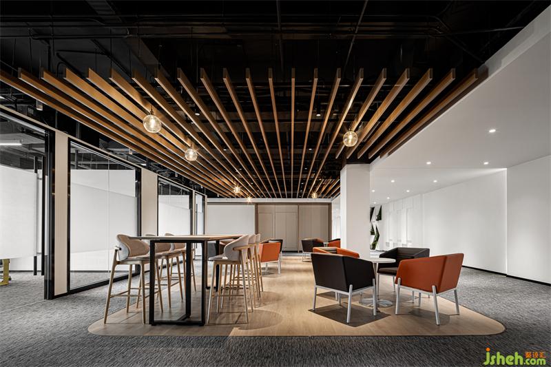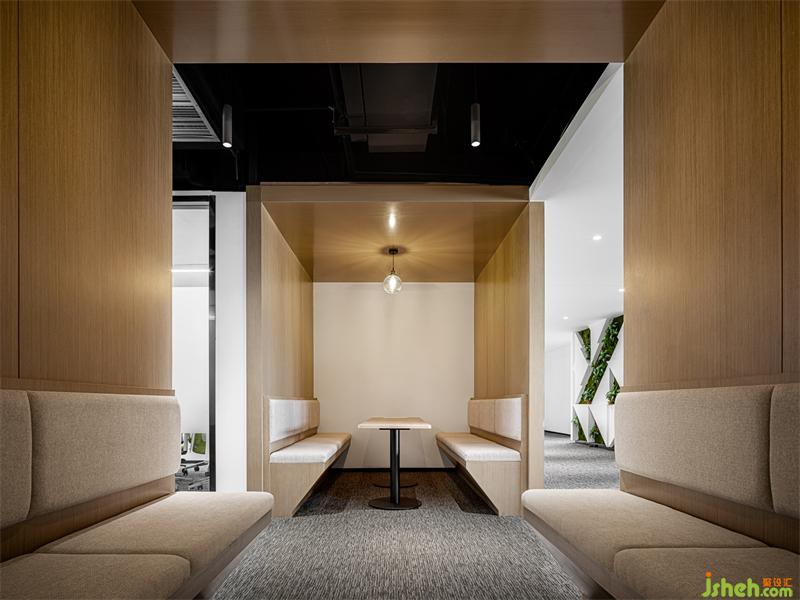 辦公空間通過“中央休閑區(qū)”和通道綠植墻,構(gòu)建出一個休閑和綠色區(qū)域,家具選品采用簡約造型且高低層次豐富,功能上具有多種組合的產(chǎn)品,色彩上也采用了撞色組合,使空間的氛圍更活躍,更自由。