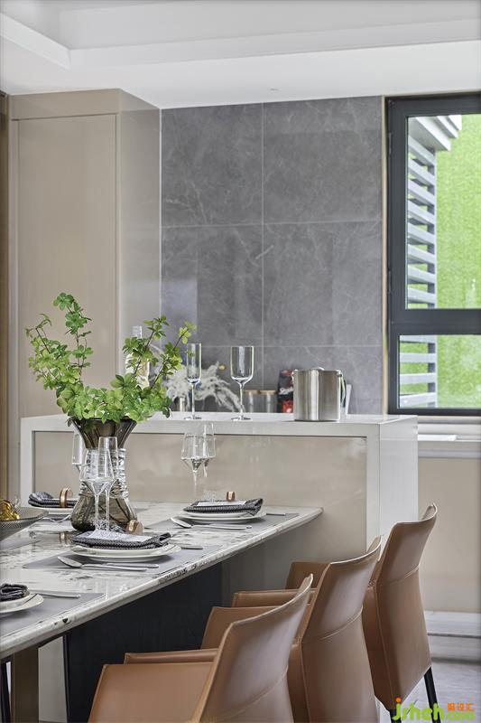 和煦的陽(yáng)光,透過(guò)稠密的樹(shù)葉灑落下來(lái),成了點(diǎn)點(diǎn)金色的光斑。餐廳成為一家人最常待的區(qū)域,這里是他們的感情連接處,墻壁的裝飾品點(diǎn)綴提升用餐氛圍感,在這里展開(kāi)生活的無(wú)限可能。