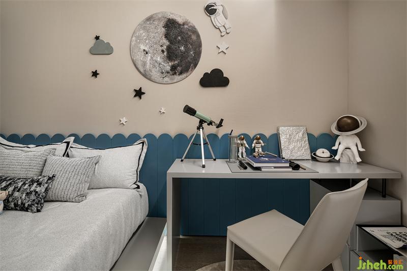 當(dāng)遨遊太空的夢(mèng)想成為現(xiàn)實(shí)......兒童房給夠孩童幻想的餘地,樣板間設(shè)計(jì)也給予他們承載人文的氛圍,動(dòng)靜結(jié)合,細(xì)膩而富於生活化的配飾陳設(shè),飽滿了整個(gè)房間。