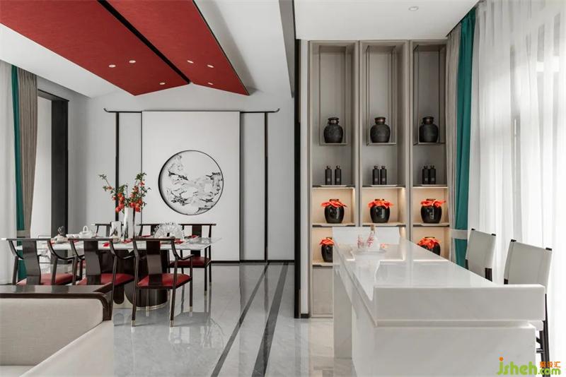 茶幾上的花瓶與擺飾品,花瓶里紅色花藝的點(diǎn)綴,讓整個空間都顯得格外的端莊。以夢為馬,不負(fù)韶華,透過歷史的年輪,我們看到過往歷久而彌 新,與其相輝映。