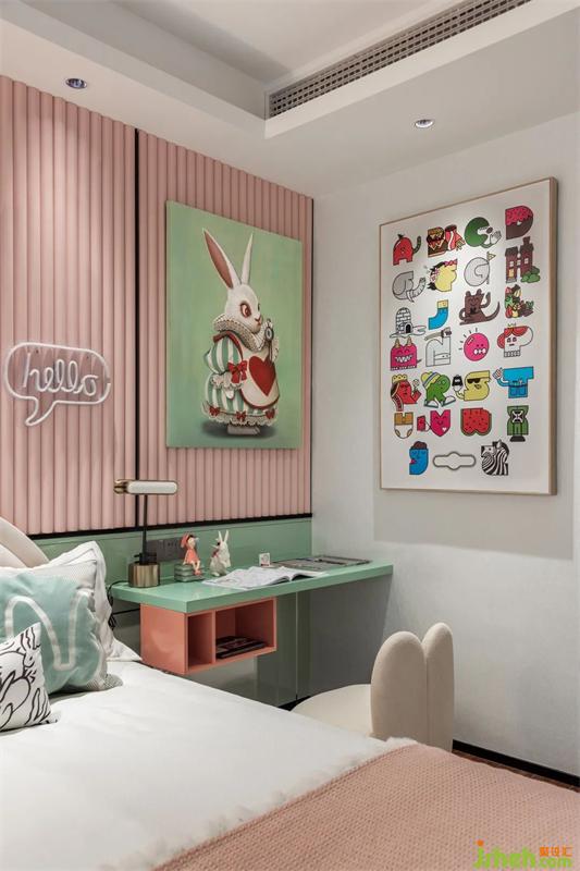 兒童房圍繞著彼得兔元素的空間營造,以明快的色彩渲染整個空間;少女心,兔子屋,精靈飛舞,帶上所有浪漫墜入異想空間,本站是彼得兔的童話世界。