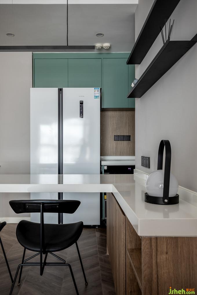 客廳的布置簡單干凈,暖灰色墻體搭配原木色電視柜,室內(nèi)設(shè)計師一組沙發(fā)+橢圓茶幾,日常坐在地毯上,靠著沙發(fā)看劇,擼貓,或在茶幾上進(jìn)食,一個人的生活,便能如此隨性自由。電視柜的設(shè)計增加了客廳的儲物功能,拉平了客餐廳墻體,從客廳看室內(nèi)過道,將公共空間連成一體,相互呼應(yīng),擴(kuò)大空間視覺感。