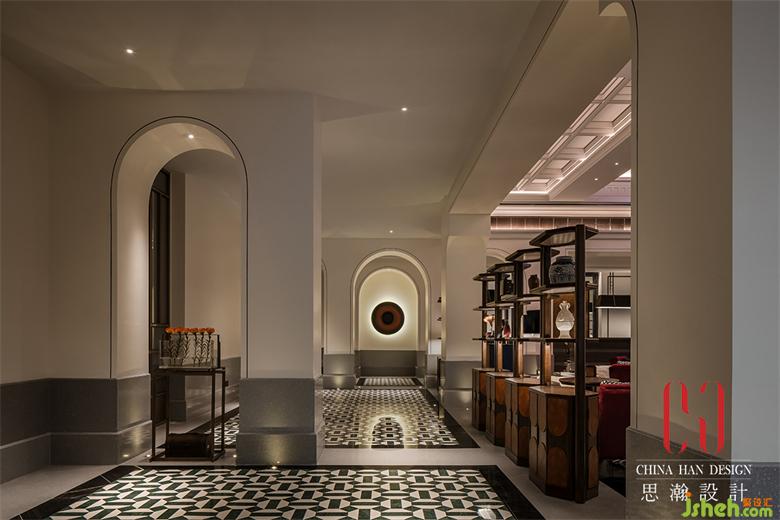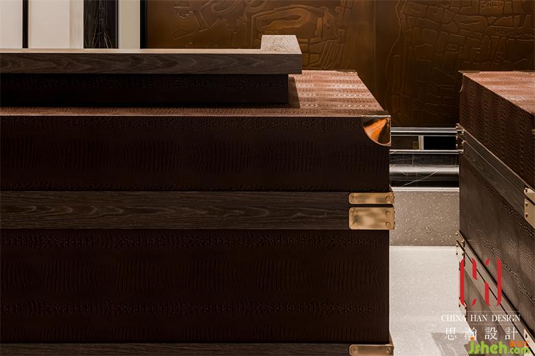 皮革質(zhì)地,旅行箱造型的前臺,以及端景的武漢老地圖純銅浮雕,觸發(fā)百年前郵輪民國風(fēng)情和碼頭、租界文化的時光記憶。