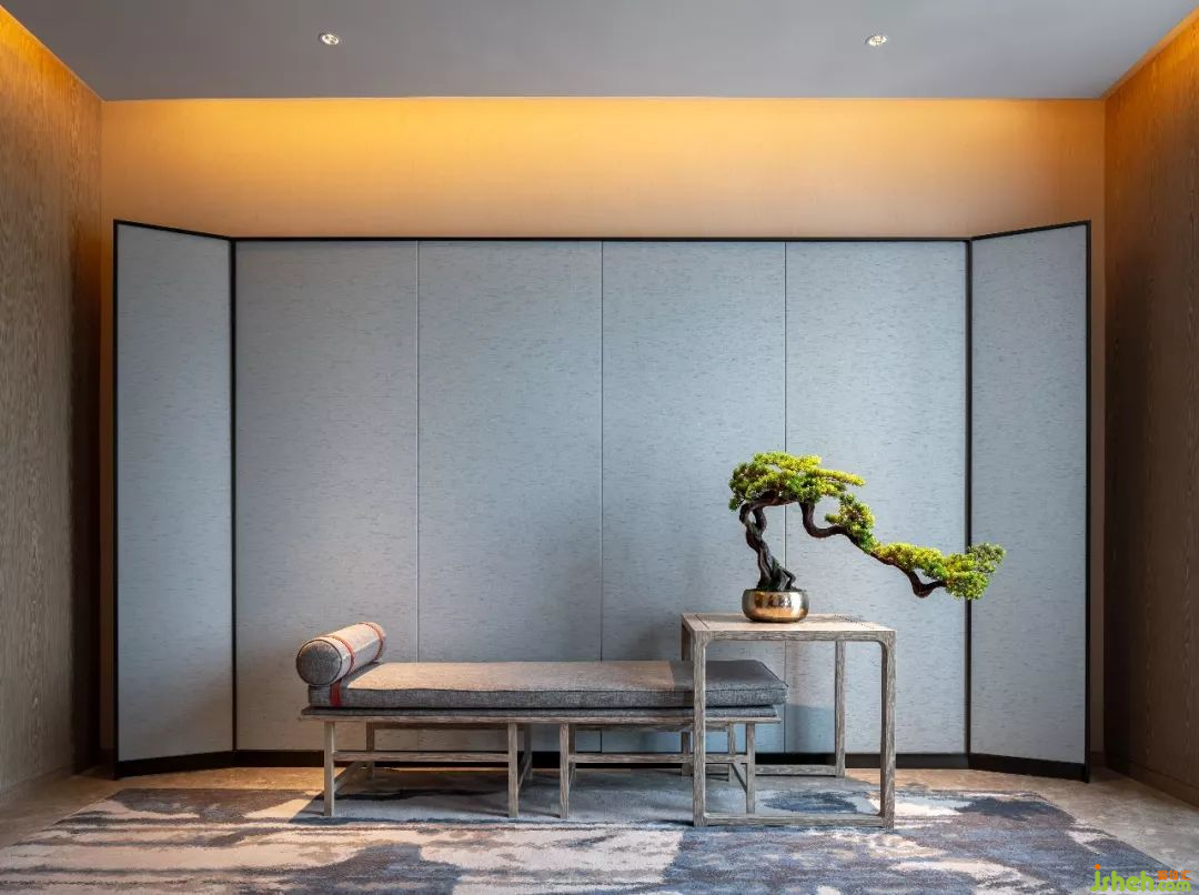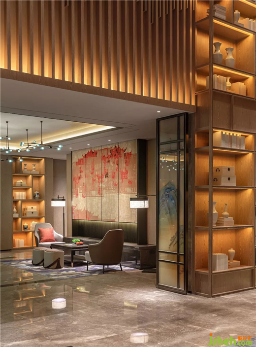 定瓷作為宋代五大名窯之一,酒店設(shè)計師以軟裝陳設(shè)的方式,融入空間柜架中,將傳統(tǒng)建筑、自然、藝術(shù)品相融合,營造出自然、輕雅的城市人文驛站。