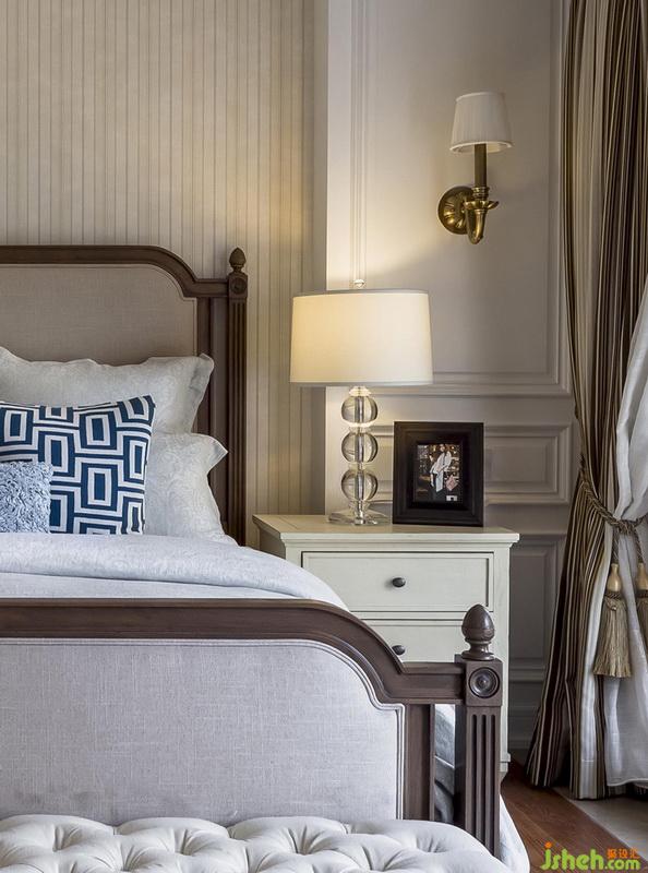床尾的布藝腳踏,通過(guò)簡(jiǎn)單優(yōu)美的曲線,營(yíng)造出優(yōu)雅的室內(nèi)氛圍。通過(guò)純手工雕刻和精美的涂飾效果形成空間層次,錯(cuò)落有致的主題,展現(xiàn)唯美的英式風(fēng)情。