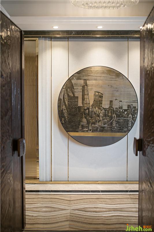 推門而入,映入眼簾的是一個圓形的裝置藝術品,“圓”是中國文化的一個重要精神原形,契合了中國人內(nèi)心深處對圓滿人生的向往。結合倫敦地標性建筑——倫敦塔橋剪影,在莊重典雅的氛圍中流露出的文化底蘊,彰顯主人豐富的人生閱歷與品味。