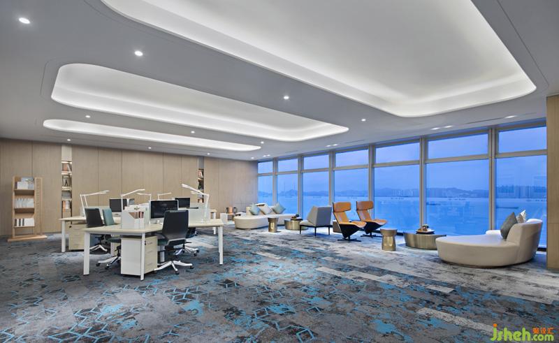 在室內(nèi)透過落地窗一覽天幕海景,開闊的視野讓員工在思考中靈感迸發(fā)。