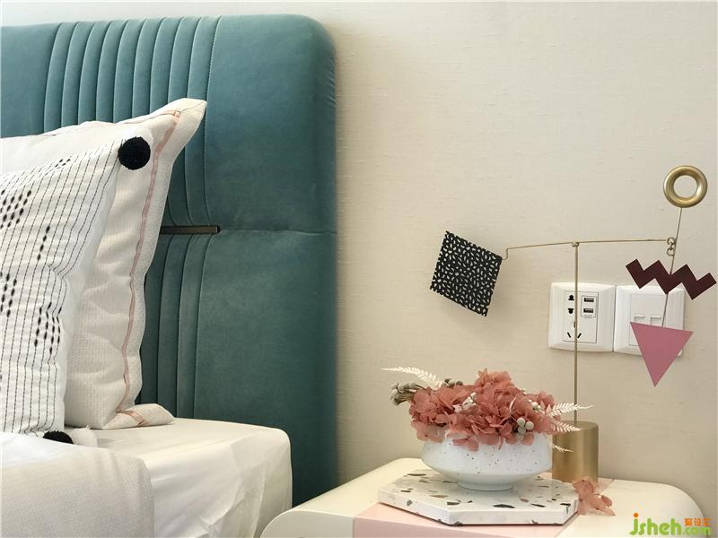 光賦予空間以故事性,在時間流逝中,歷史的印記被銘刻在這一桌一椅、一花一瓶里。幾只蜻蜓在花影中嬉戲翻飛,環(huán)扣造型的床頭燈仿若扣住時光的年輪,演繹著一幕幕芳華歲月。樣板房設計