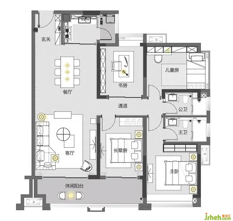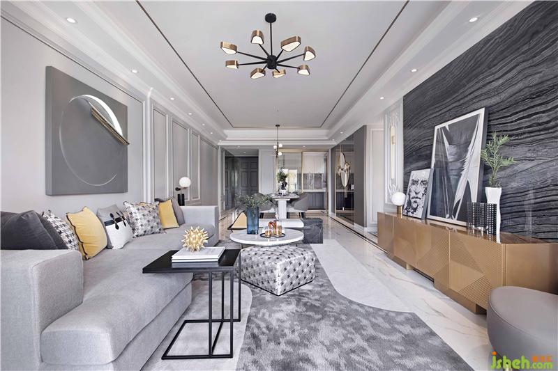 室內(nèi)設(shè)計(jì)師說:我們將現(xiàn)代建筑與洛可可風(fēng)融為一體,時(shí)尚、舒適的現(xiàn)代家具與古典的石膏雕塑和掛畫結(jié)合,點(diǎn)綴了一抹明艷的黃與熱情的紅,詮釋了一個(gè)更有韻味的現(xiàn)代簡約風(fēng)。既代表了現(xiàn)代前衛(wèi),又巧妙融合了復(fù)古典雅。以現(xiàn)代的手法詮釋了古典,張弛有度,為居者呈現(xiàn)一個(gè)有品味、有涵養(yǎng)的空間。