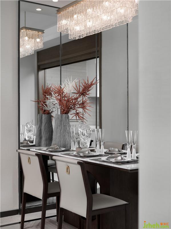 用儒雅的中式氣息,去打造中式現(xiàn)代風的民族特色餐廳。山水之間,茶味糜香,水墨的山紋元素貫穿燈具、掛畫,方圓交織的餐桌,演繹著空間的獨特東方氣韻。