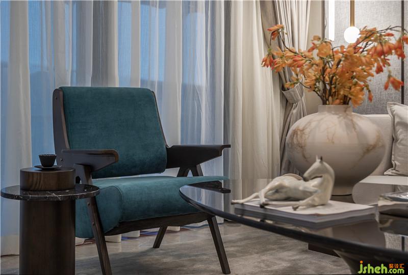 室內(nèi)設(shè)計(jì)師從大自然的感知視角出發(fā),通過攝取大自然山水元素,演繹一個(gè)清靜舒適的禪意居所。樹脂材質(zhì)的掛飾猶如晶瑩剔透的露珠,是整個(gè)空間的點(diǎn)睛之筆。水波紋的電視柜像是水珠滴落在水面上,泛起陣陣漣漪,邊幾為水珠狀的造型,不同造型的角幾,都體現(xiàn)了露珠的不同時(shí)期的形狀,猶如生活,它不會(huì)總是一成不變。