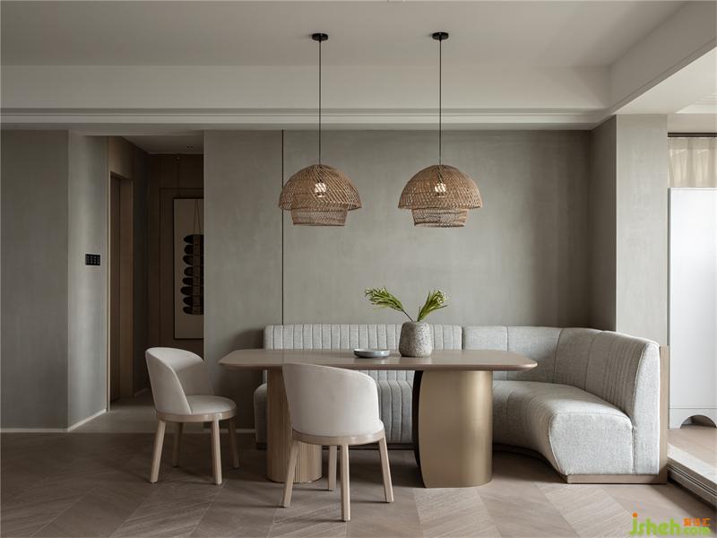 在客廳一隅,竹編的鳥籠吊燈,展現(xiàn)出手工藝的趣致,簡單的自然元素,質(zhì)樸溫潤,微水泥墻面的剛性與半圍合沙發(fā)的柔性,散發(fā)出耐人尋味的溫度,讓身處繁華都市的人們,產(chǎn)生對侘寂生活的向往,都市侘寂風(fēng),傳達美的方式--婉約著直達內(nèi)心。