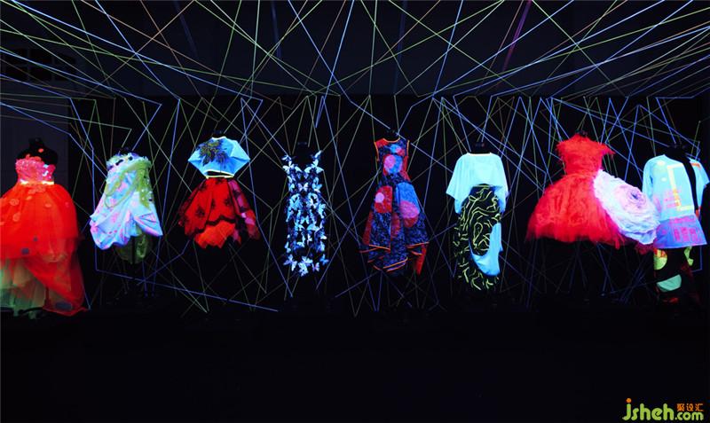 這個展覽設(shè)計搭建在新加坡Peranakan博物館,為來自南洋藝術(shù)學(xué)院服裝設(shè)計系八件具本地色彩的熒光服飾的展出空間。