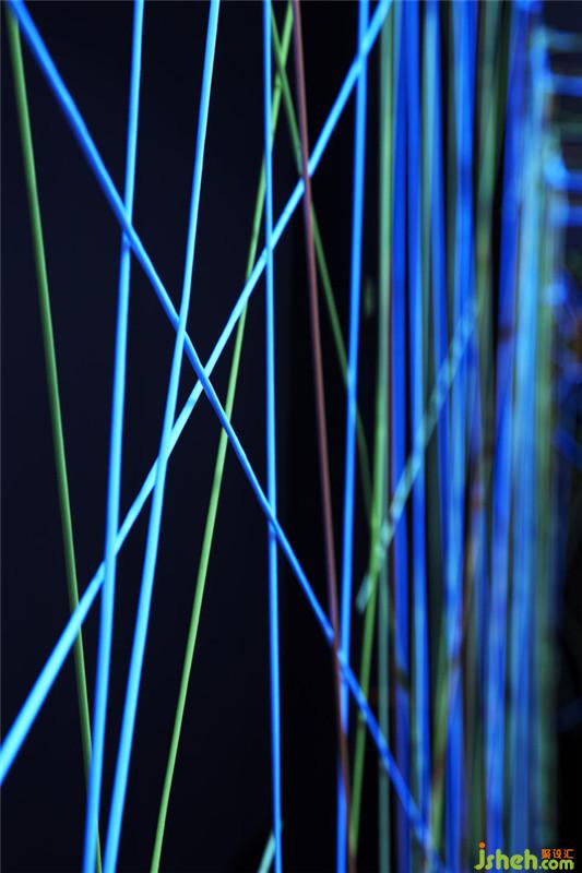 展覽在漆黑空間里用熒光繩相互交織,其實(shí)是將形成星云的超新星爆炸的高速移動軌跡實(shí)體化的一種表現(xiàn)手法。設(shè)計公司