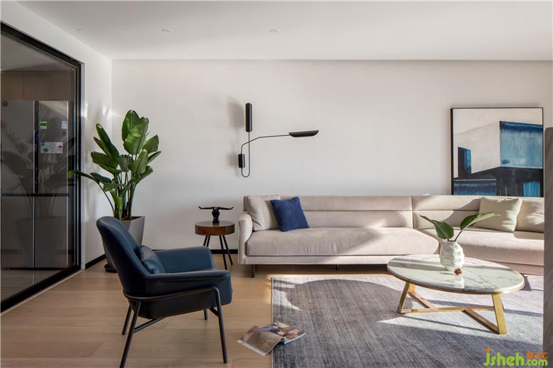 廚房和客廳之間設(shè)計(jì)玻璃大滑門,室內(nèi)設(shè)計(jì)師這樣的設(shè)計(jì)首先可以隔絕廚房的油煙其次讓廚房的區(qū)域光線更加的充足明亮在視覺(jué)上使空間更加的通透。廚房的吧臺(tái)以柱子而建即滿足了業(yè)主對(duì)島臺(tái)的需求同時(shí)也避免了孤立的柱子給空間帶來(lái)的尷尬局面。