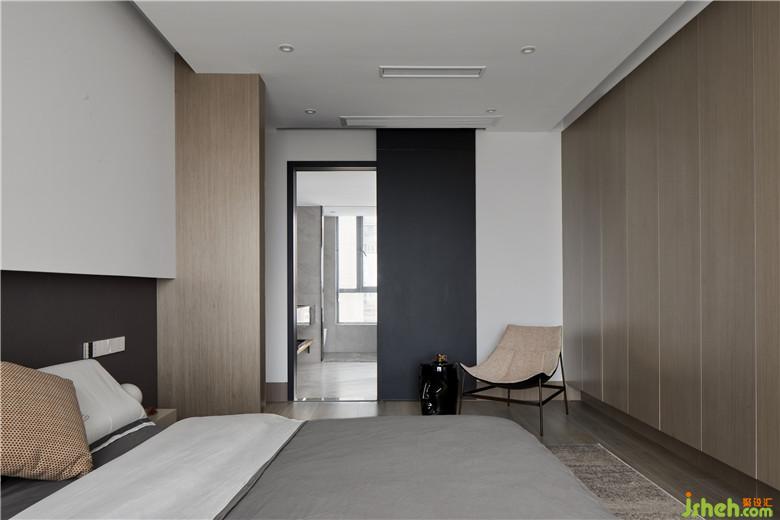 主臥室室內(nèi)設(shè)計師重新調(diào)整結(jié)構(gòu)布局,利用臥室較大的進(jìn)深,弱化了衣帽間的設(shè)計,增加了隱形衣柜,既實用又美觀。