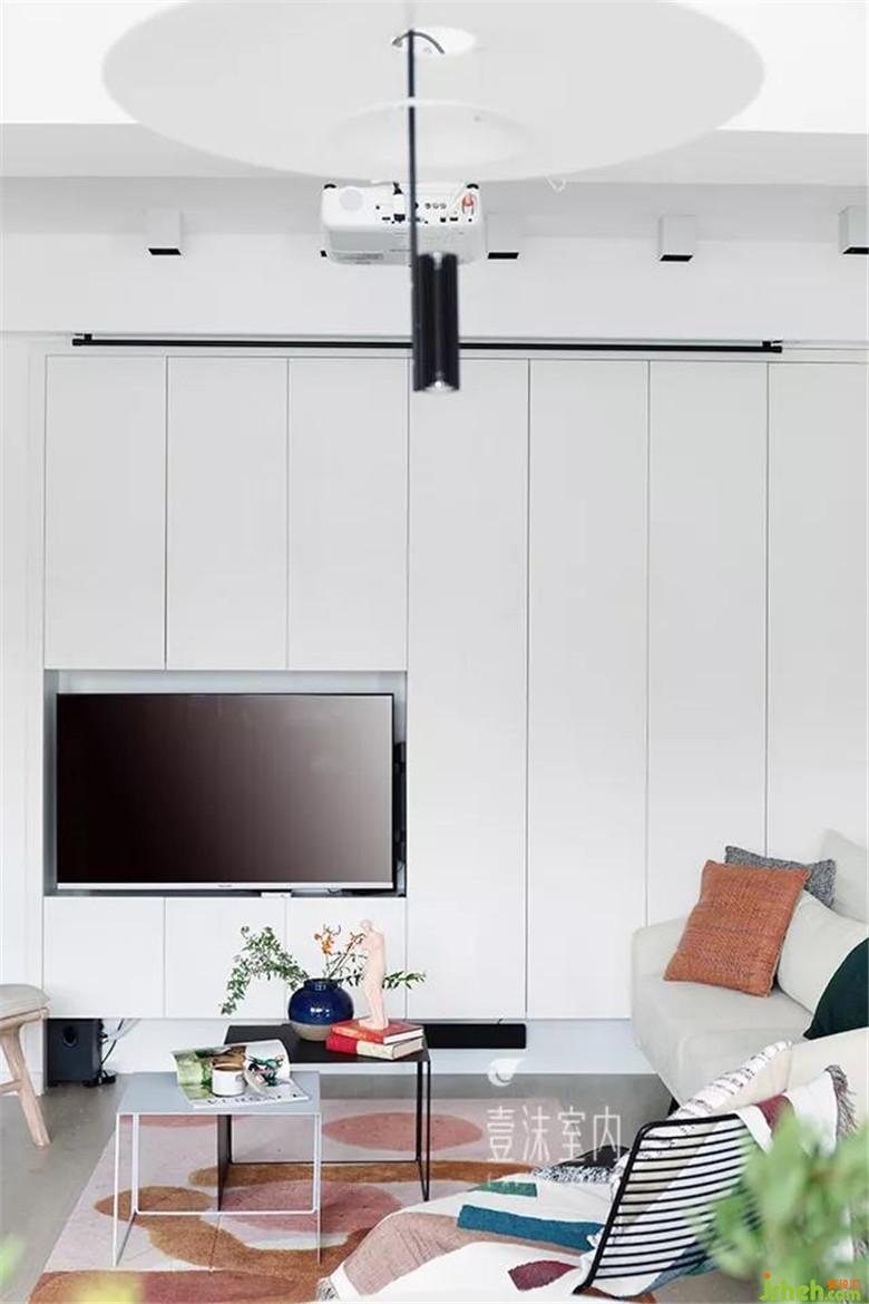 1、客廳同時(shí)考慮了電視機(jī)與投影,因公共空間儲(chǔ)物有限,客廳增加了一面儲(chǔ)物柜,電視嵌入到儲(chǔ)物柜內(nèi)部,考慮到在客廳看電視與玩游戲的舒適性,在電視背后增加了旋轉(zhuǎn)支架,全家需要看電視或者老公需要玩游戲的時(shí)候可以將旋轉(zhuǎn)支架旋轉(zhuǎn)90度正對(duì)客廳沙發(fā)。