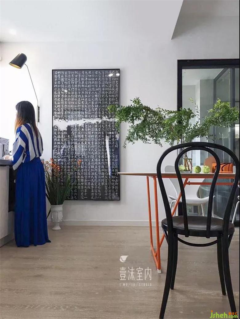 巨幅碑帖是業(yè)主在一次西安旅行中購入,因其精致的印刷,一直希望有一個地方展示,設(shè)計師看之后,用黑色的畫框裝飾保護(hù),直接將其懸掛在餐廳區(qū)域,當(dāng)每一次看到之后,都可以想起與愛人在西安旅行的美好經(jīng)歷。