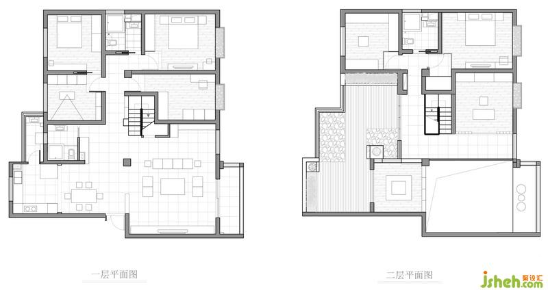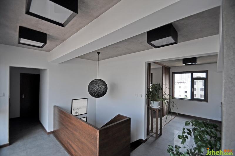 二層:往露臺擴(kuò)建出茶室,在樓梯的一側(cè)加蓋了書房。