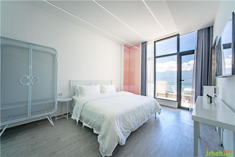 整個設計希望以最簡單的方式塑造出多變的適合情侶居住的空間。因為有4個尺度相似的房間,如何滿足不同用戶的需求成了我們需要考慮的問題。浪漫是大多情侶所追求的體驗,房型的設計在打造出純粹的使用環(huán)境的同時,通過燈光的改變來增添情侶相處時的趣味性,使人心情愉悅的同時增加了伴侶間的親密感,從而催生情感的觸發(fā)。臥室空間中,留存主墻面作為投影面,而其余的墻面則被會散發(fā)神秘光線的陽光板點綴,促發(fā)情侶獨處時的神秘感,從而促進感情的極速升溫。