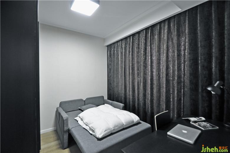 小臥室被用于做書房讓業(yè)主能在相對(duì)獨(dú)立的環(huán)境中辦公看書。通過(guò)書房沙發(fā)床的改變,同樣能夠滿足訪客來(lái)訪的居住需求。這樣既避免了床這樣的大家具在小空間中產(chǎn)生的占據(jù)感,同樣增加了空間的多樣性。