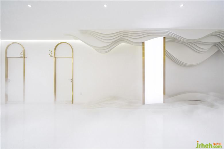 作為“秘境”的延伸,加強對山水之境的渲染,室內設計師在休閑區(qū)采用了大量的波浪形雕塑,它們有的從天花板上垂掛而下,有的矗立在地面上,層層疊疊,而每一層的線形又富于柔和的起伏變化,極具層次感。它們是山的意象又是水的幻化。