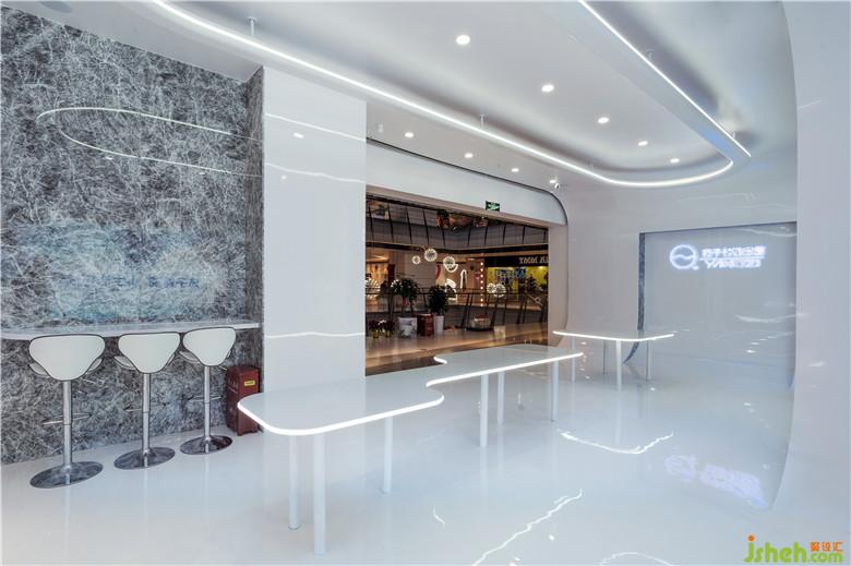 吧臺(tái)洽談區(qū)主要針對(duì)購(gòu)買意向較強(qiáng)顧客,用于顧客與店員深入交流產(chǎn)品信息及購(gòu)買意向。吧臺(tái)置于平面一角,借助櫥窗的遮擋,在店內(nèi)創(chuàng)造了一處相對(duì)私密的空間。