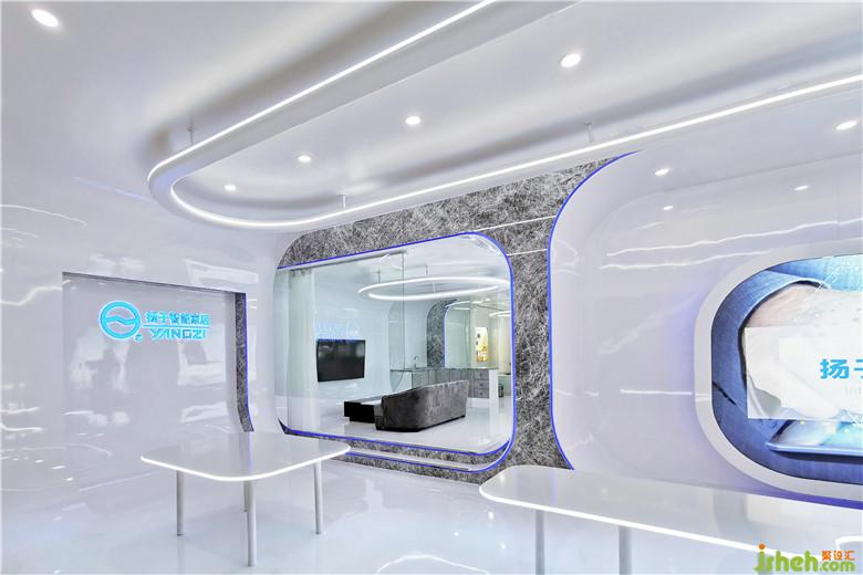 為體現(xiàn)空間的未來(lái)科技感,同時(shí)突出產(chǎn)品,在整體的材料選擇上,裝修公司采用混油木飾面及環(huán)氧地坪漆創(chuàng)造了純粹的白色空間基調(diào),地板與墻體連接處的弧面和天花板與墻體連接處的弧面均采用鍍鋅方管搭建造型骨架,地坪漆通過(guò)數(shù)碼調(diào)控以達(dá)與墻面的無(wú)色差銜接,提供給參與者一種室內(nèi)地面、天花和墻體一體化的高科技未來(lái)感的體驗(yàn),不會(huì)喧賓奪主而是將注意力完全投注在產(chǎn)品上從而使得其特質(zhì)得以最大化的呈現(xiàn)。