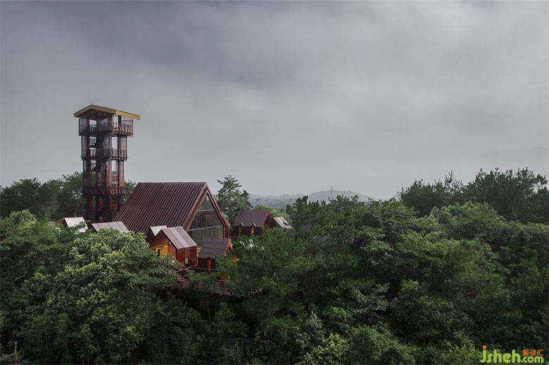 設計包含一座24米高的瞭望塔,一個多功能大廳,以及19個預制森林木屋。