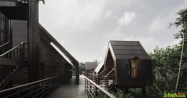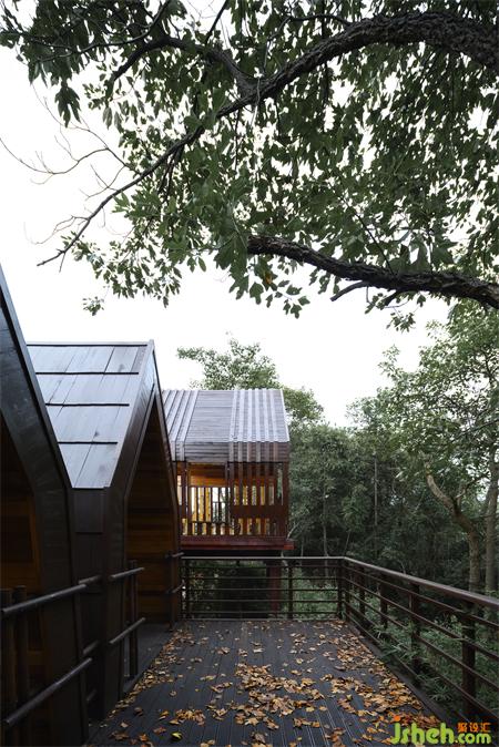 九江民宿設(shè)計(jì)也得益于這樣的天然稟賦和設(shè)計(jì)方法,最終呈現(xiàn)的建筑反而充滿呼吸感:3種類型的小木屋模塊嵌入到場(chǎng)地中,平臺(tái)為適應(yīng)地形而呈現(xiàn)出高低錯(cuò)落的節(jié)奏。我們決定了木屋的朝向與開口方式,使他們成為互相之間的取景框。小木屋主材采用防蟲防腐處理后的洪雪松木,還暴露著原始的木制紋理。我們甚至不希望這里看起來像一座干凈整潔的新建筑,而應(yīng)該是材料與環(huán)境間已經(jīng)持續(xù)數(shù)載的一場(chǎng)親密對(duì)話。